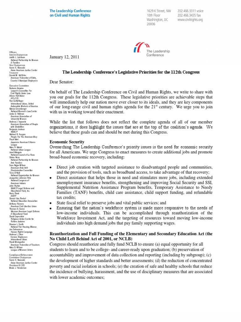 On behalf of The Leadership Conference on Civil and Human Rights, we write to share with