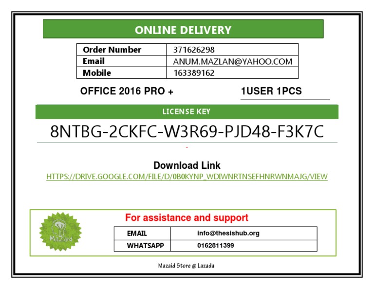 OFFICE 2016 PRO + 1USER 1PCS