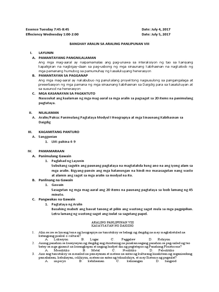 BANGHAY ARALIN SA ARALING PANLIPUNAN VIII