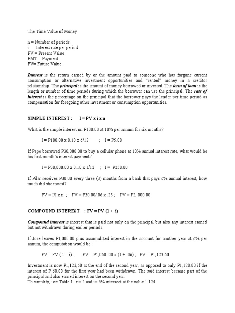 I = P100.00 x 0.10 x 6/12 ; I = P5.00