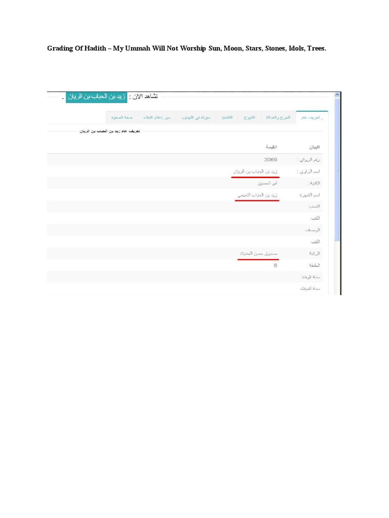 Grading of Hadith - My Ummah Will Not Worship Sun, Moon, Stars, Stones, Idols, Trees.