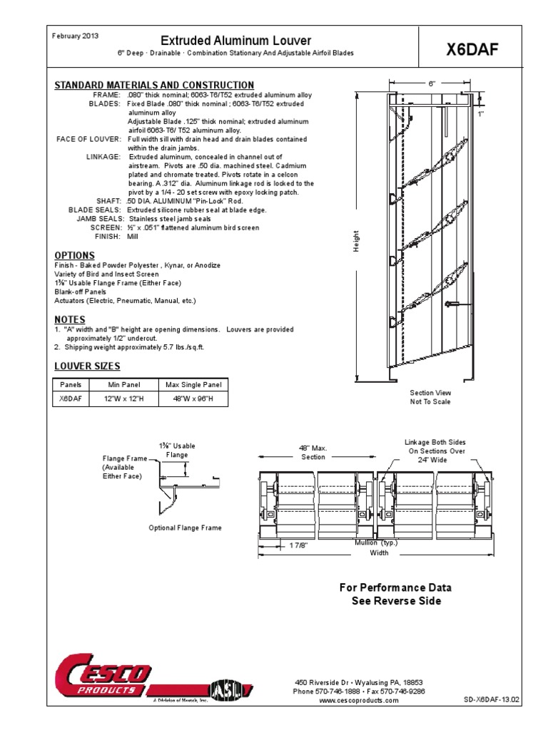 6" Deep · Drainable · Combination Stationary And Adjustable Airfoil Blades X6DAF