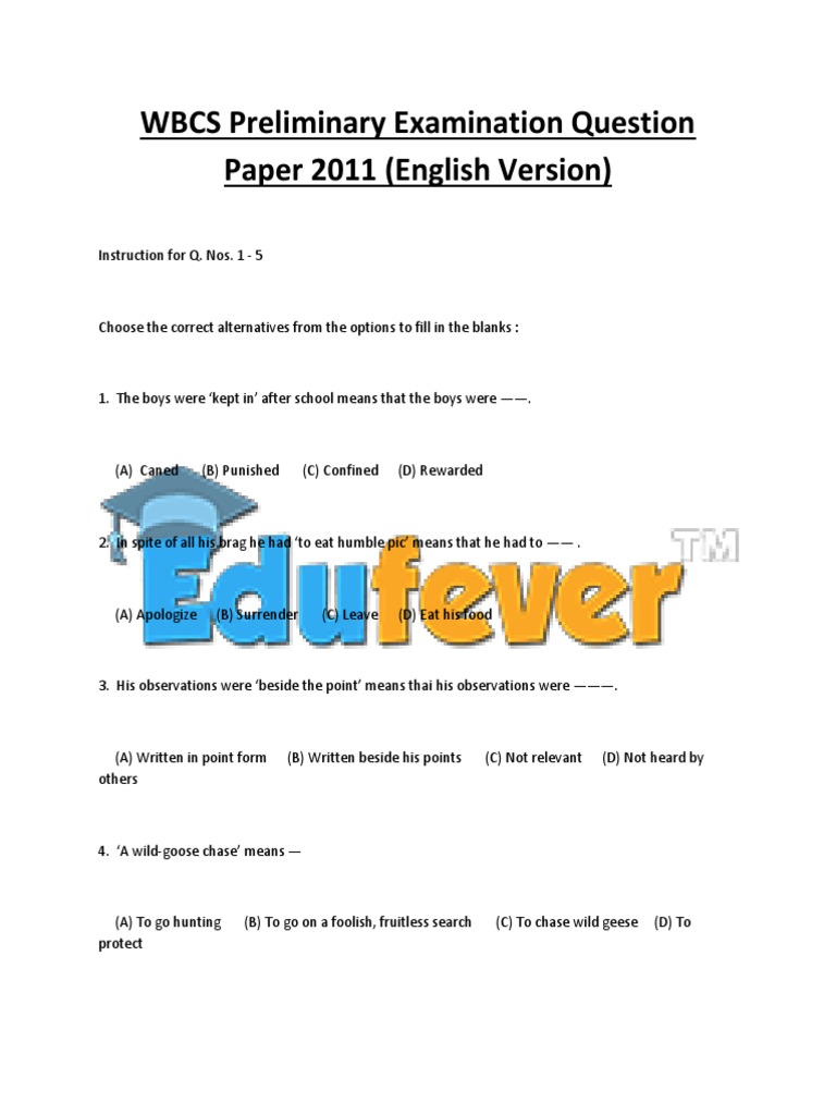 WBCS Preliminary Examination Question