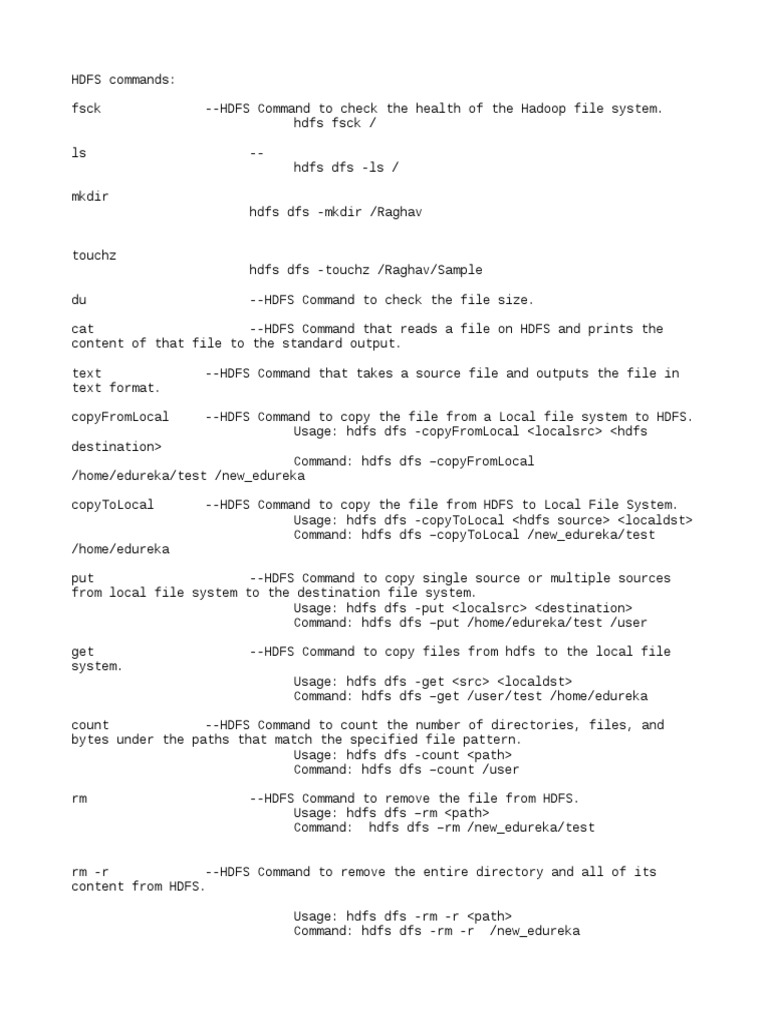fsck --HDFS Command to check the health of the Hadoop file system.