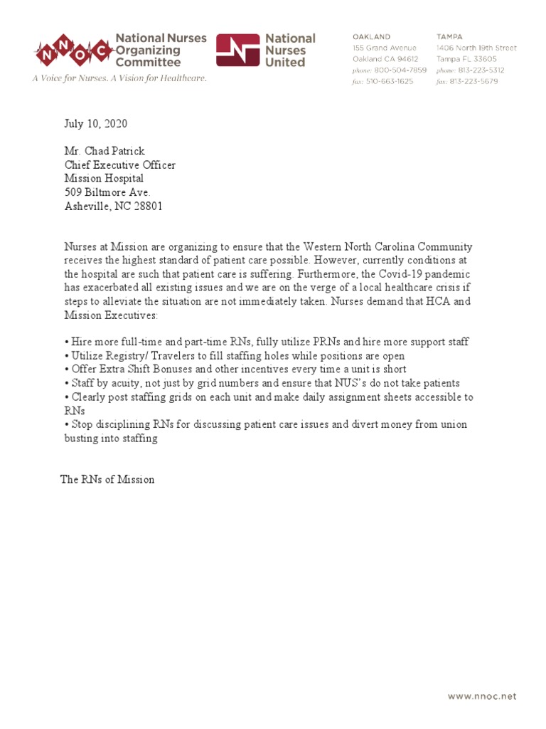 steps to alleviate the situation are not immediately taken. Nurses demand that HCA and