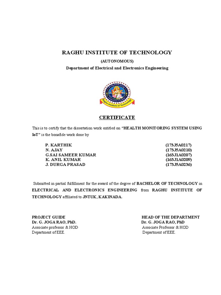 IoT” is being submitted to Raghu institute of technology, affiliated to JNTUK University in