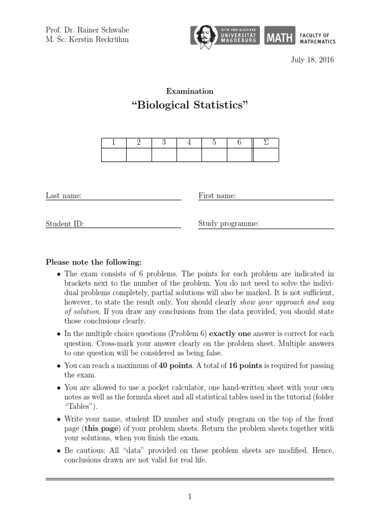 • In the multiple choice questions (Problem 6) exactly one answer is correct for each