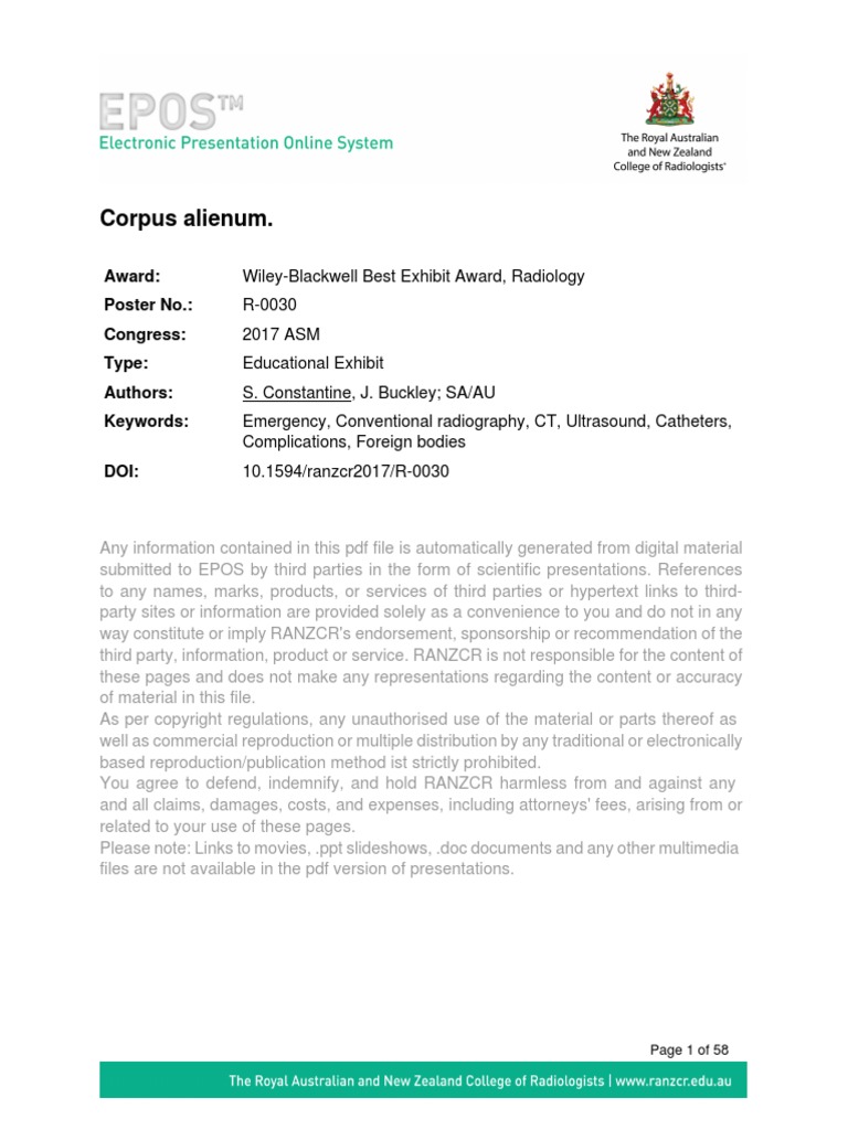 This poster gives examples of the large to very small foreign bodies, and the radiological