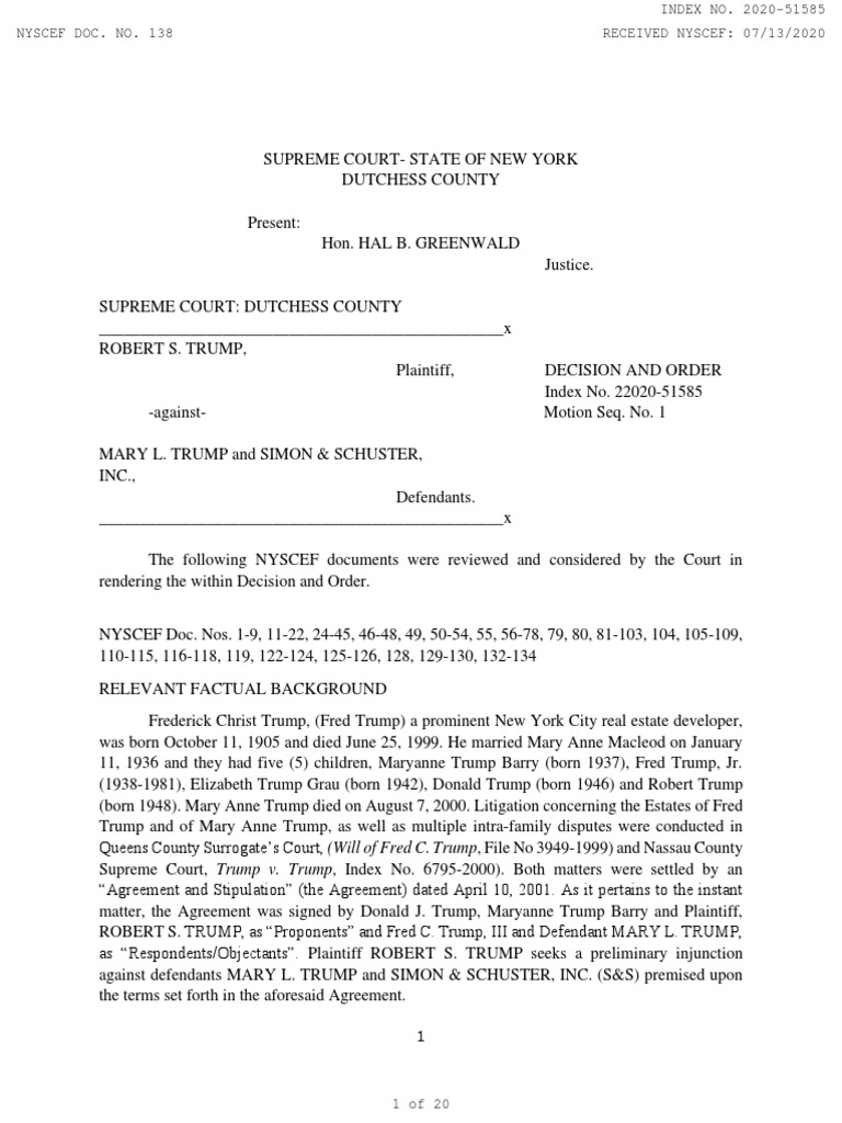 against defendants MARY L. TRUMP and SIMON & SCHUSTER, INC. (S&S) premised upon