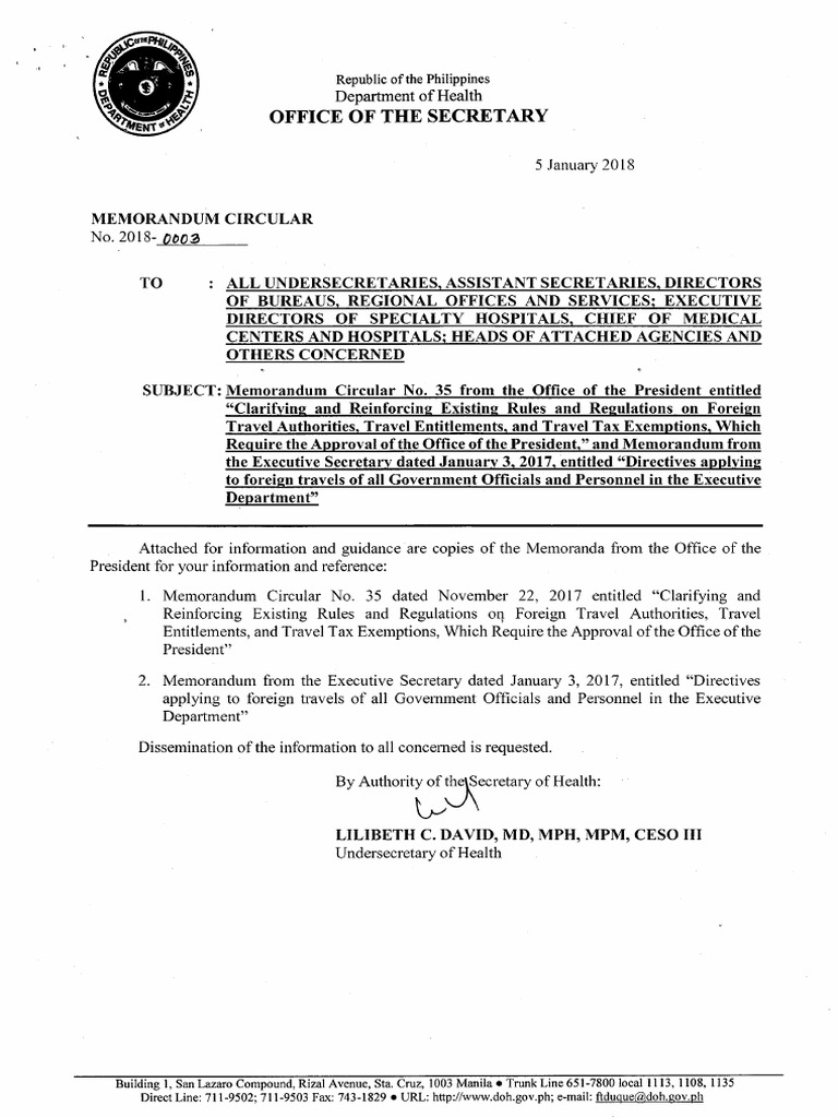 Reinforcing Existing Rules and Regulations on Foreign Travel Authorities, Travel