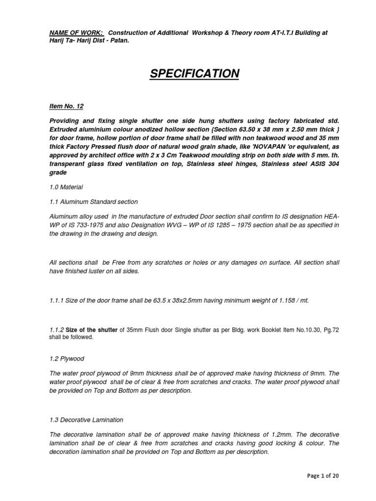 with pre approval of material used for the door, frame, shutter, fixtures, fastenings, fittings, heavy duty