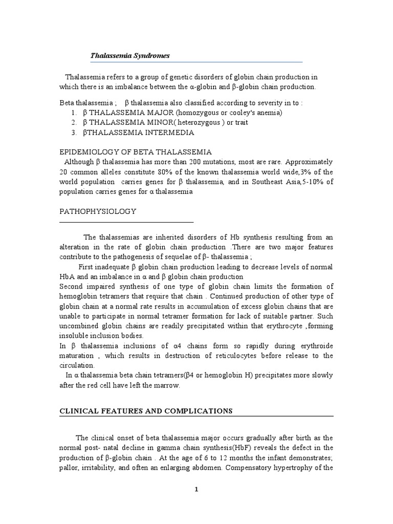 1. β THALASSEMIA MAJOR (homozygous or cooley's anemia)