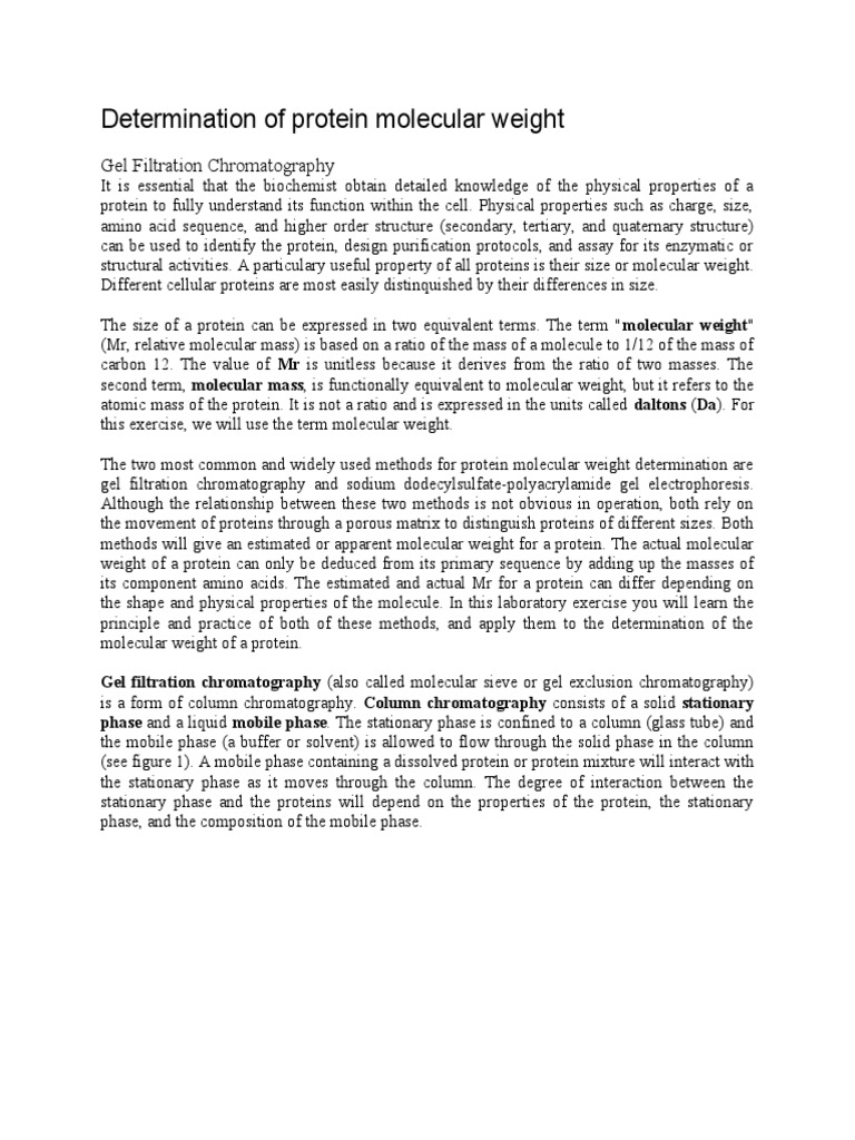 structural activities. A particulary useful property of all proteins is their size or molecular weight.