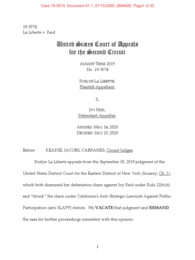 La Liberte sued Reid for defamation in the Eastern District of New York,