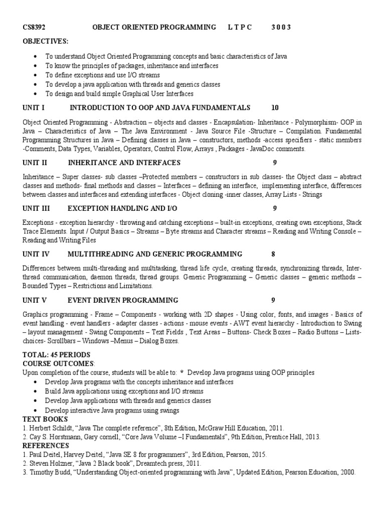 CS8392 OBJECT ORIENTED PROGRAMMING LTPC 3003
