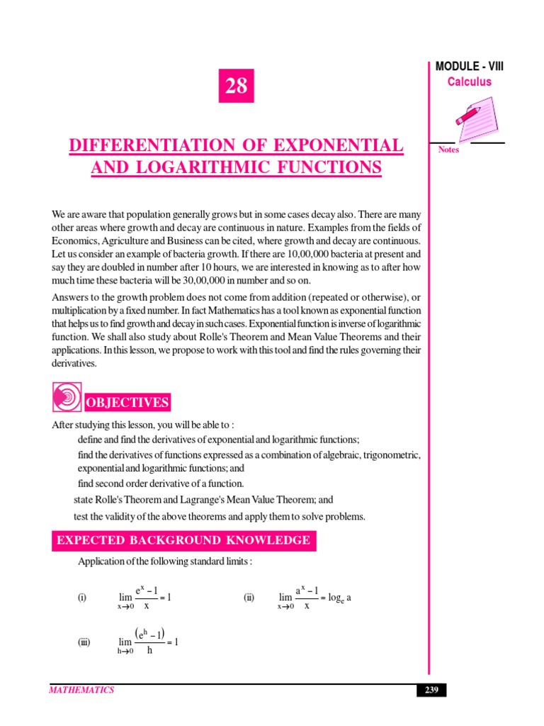 28.1 DERIVATIVE OF EXPONENTIAL FUNCTIONS