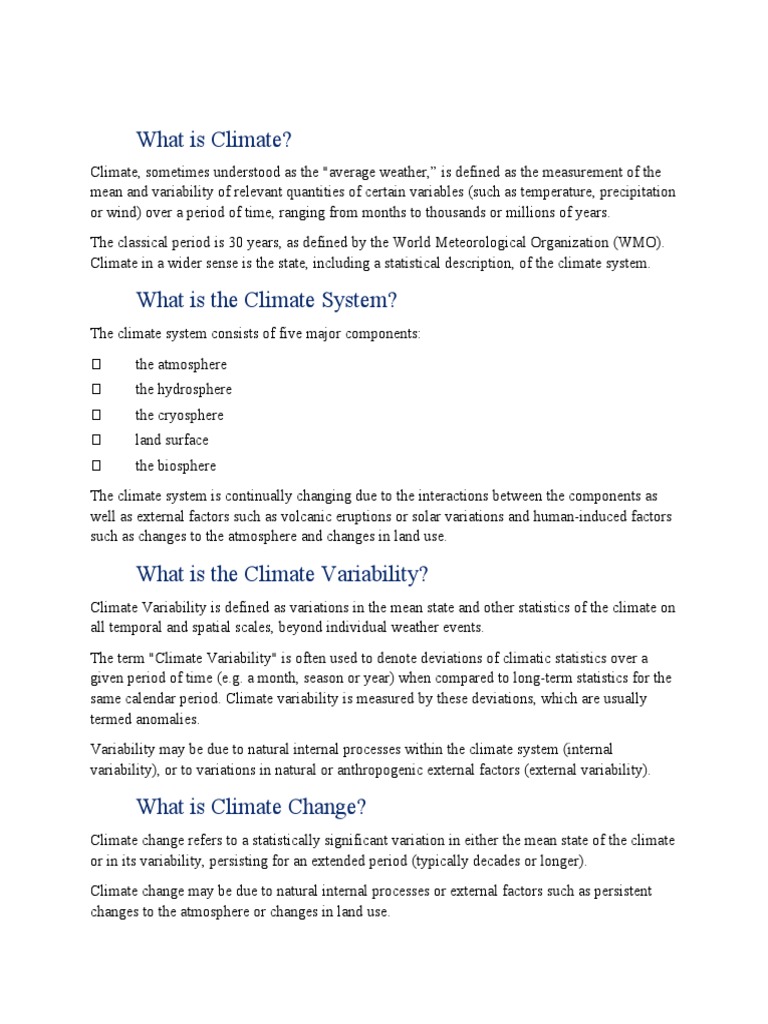 month, a season or a year, and climate change considers changes that occur over a longer period