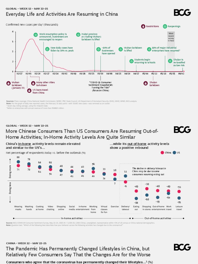 Sources: BCG COVID- Consumer Sentiment Survey, May –, (N = ,), unweighted, representative within ±% of China national demographics; consultancy.asia.org.
