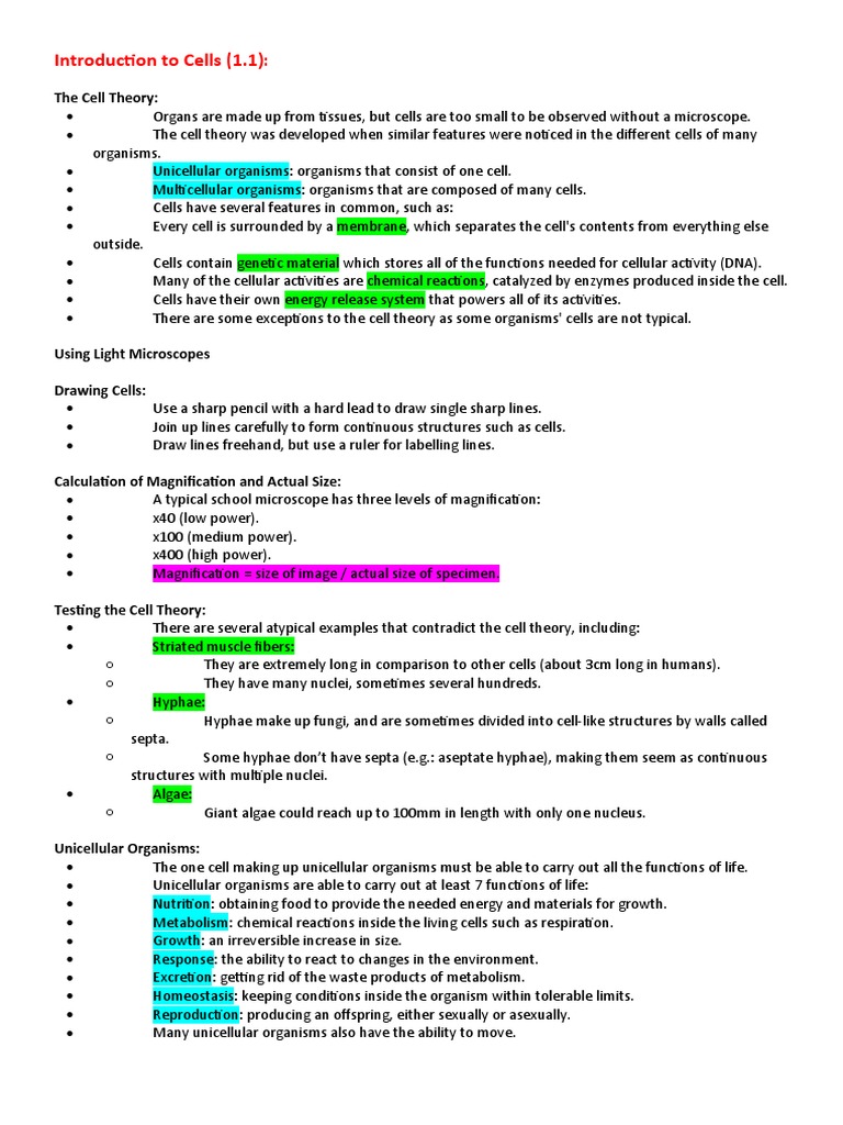 The one cell making up unicellular organisms must be able to carry out all the functions of life.
