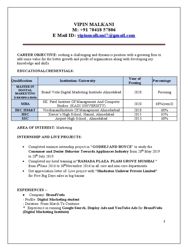 Marketing Hands On Experience On Various Online Tools Such As: