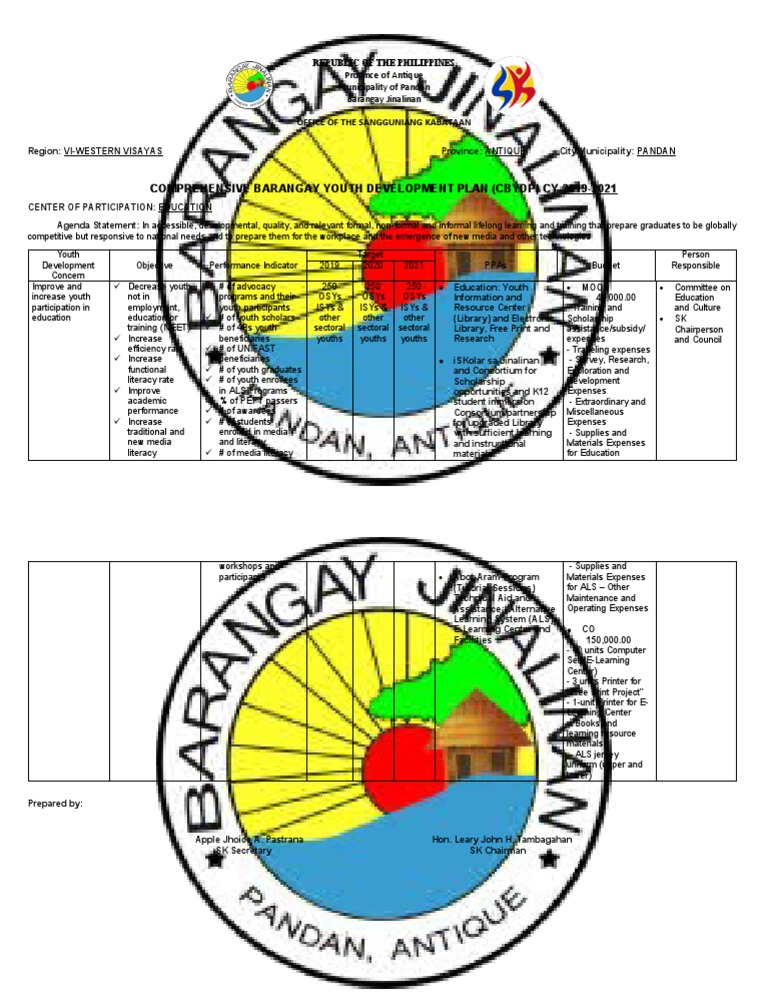 COMPREHENSIVE BARANGAY YOUTH DEVELOPMENT PLAN (CBYDP) CY 2019-2021
