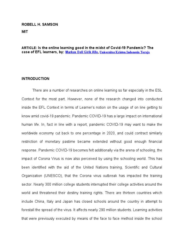 ARTICLE: Is the online learning good in the midst of Covid-19 Pandemic? The