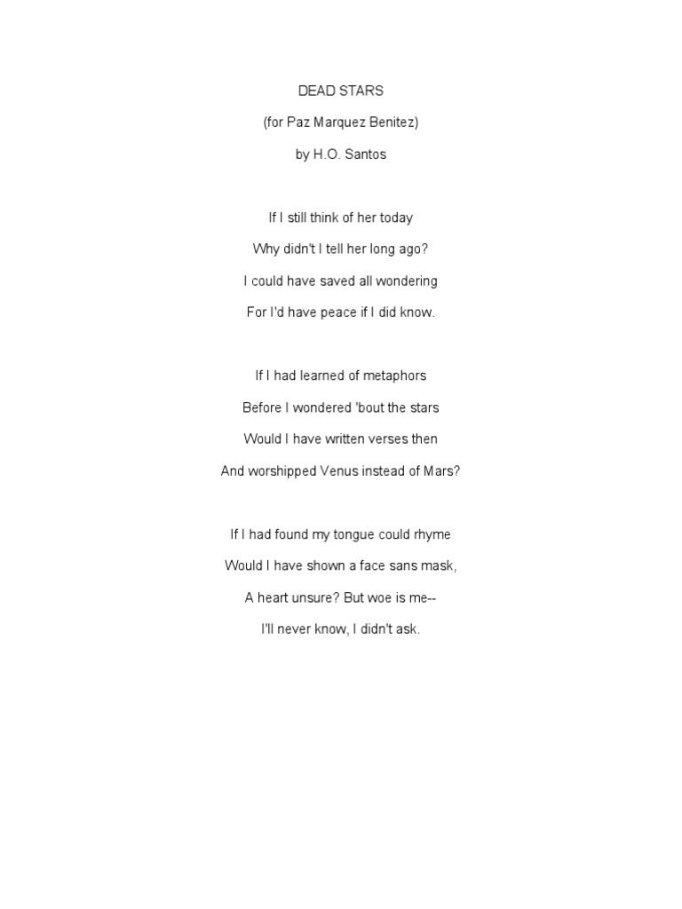 Dead Stars by H. O. Santos is a poem the exudes love and regret despite the