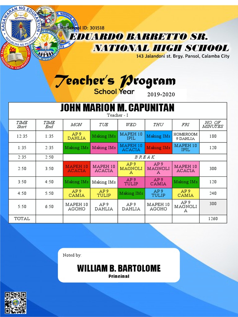 12:35 1:35 AP 9 Making IMs MAPEH 10 Making IMs HOMEROOM 180