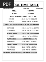 TIME TIME MON TUE WED THU FRI NO. OF