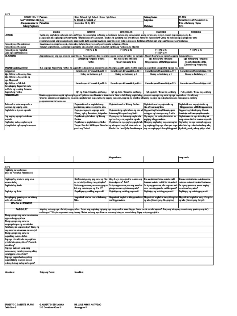 DAILY LESSON LOG Guro G. Ernesto C. Caberte Jr. Asignatura Komunikasyon at Pananaliksik sa