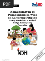 Pamantayang Pangnilalaman Nauunawaan ang mga konsepto, elementong kultural, kasaysayan at gamit ng wika sa lipunang Pilipino