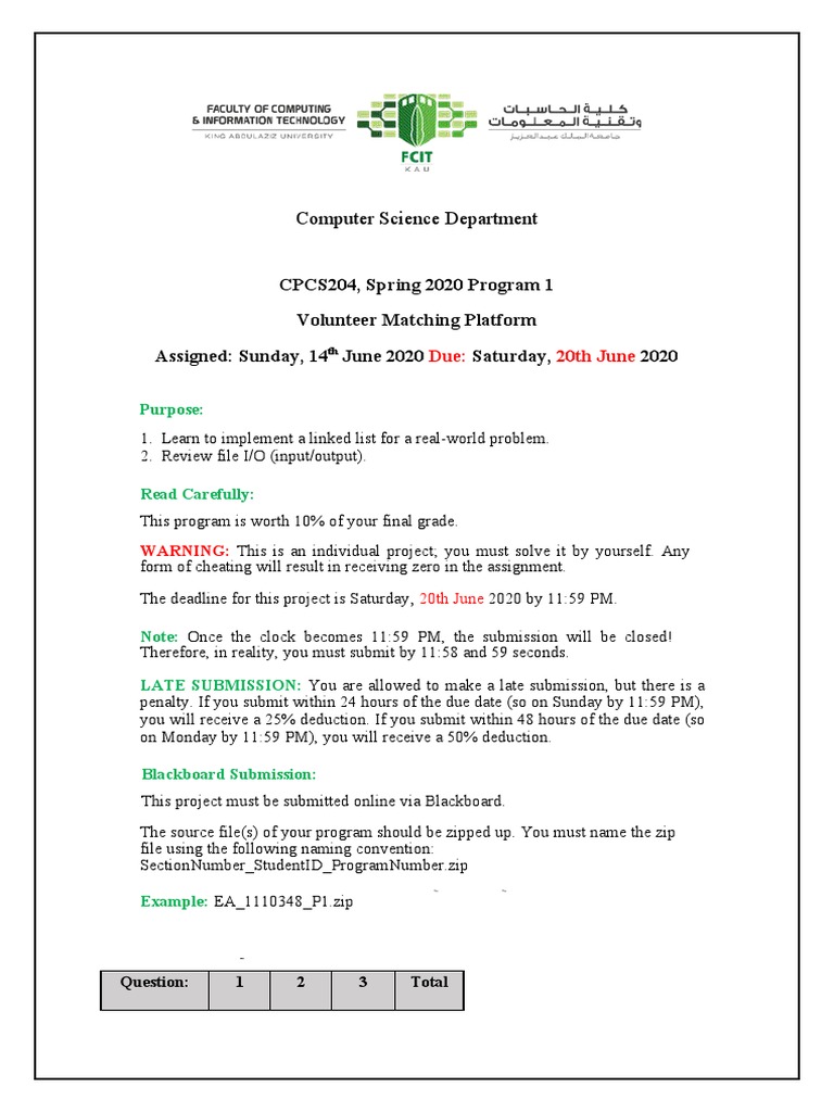 2. Algorithm Write up: Suppose a linked list contains all available projects proposed by the