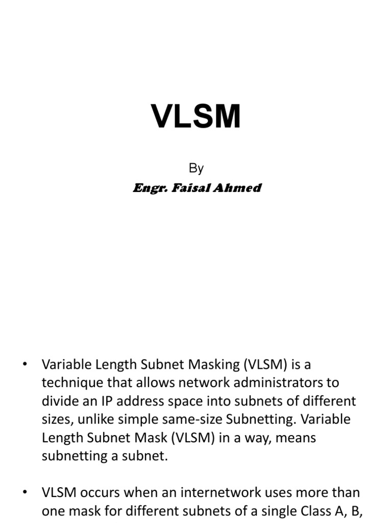 • Variable Length Subnet Masking (VLSM) is a