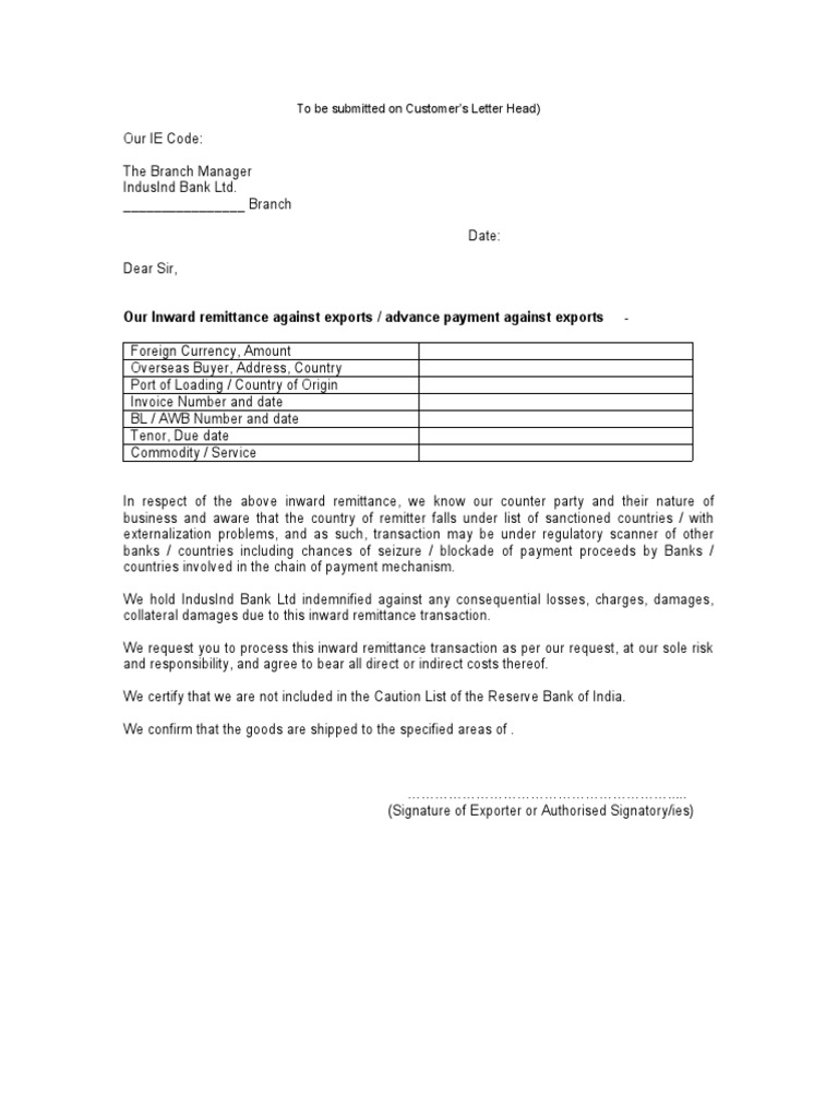 We request you to process this inward remittance transaction as per our request, at our sole risk