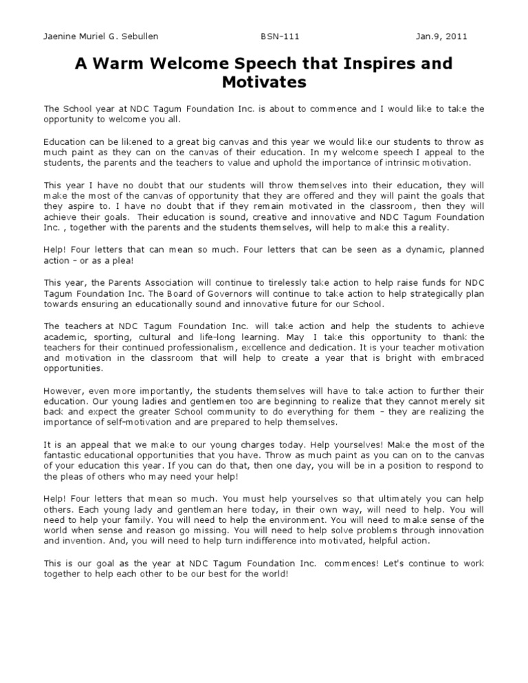 A Warm Welcome Speech that Inspires and