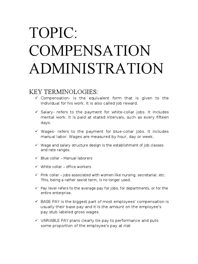 a. Direct compensation- includes salary and wage, overtime and holidays,