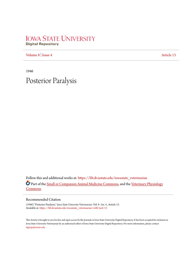 (1946) "Posterior Paralysis," Iowa State University Veterinarian: Vol. 8 : Iss. 4 , Article 13.
