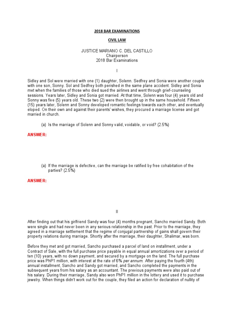 (a) Is the marriage of Solenn and Sonny valid, voidable, or void? (2.5%)