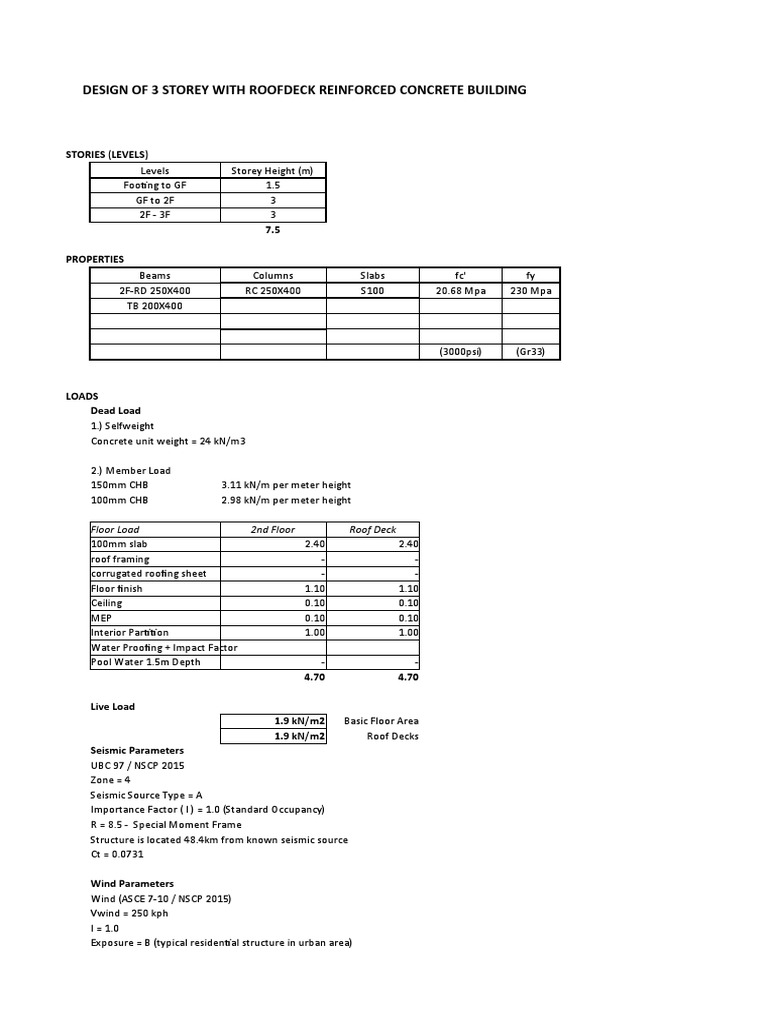 DESIGN OF 3 STOREY WITH ROOFDECK REINFORCED CONCRETE BUILDING