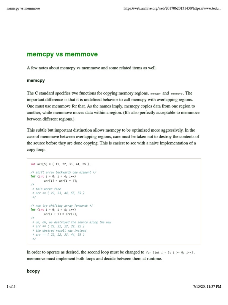 frequently implemented in terms of bcopy. This meant that every call to memcpy or memmove