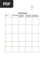 This document appears to be a reader's book log, which allows readers to record details about books they have read such as the title, dates read, and brief comments. The log contains columns for the book title, dates of reading, and a reading record section.