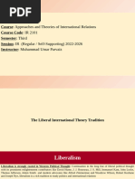 Liberalism is the most commonly accepted alternative theoretical perspective to realism