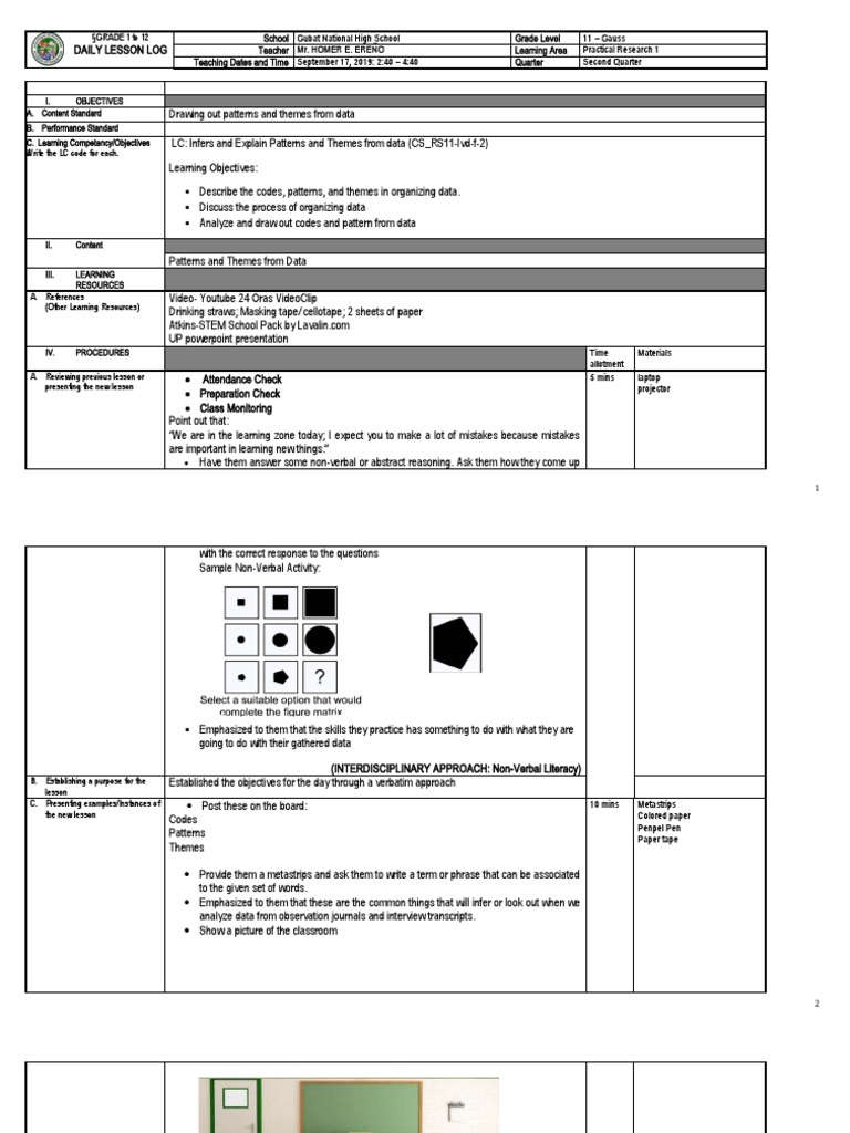 DAILY LESSON LOG Teacher Mr. HOMER E. EREÑO Learning Area Practical Research 1