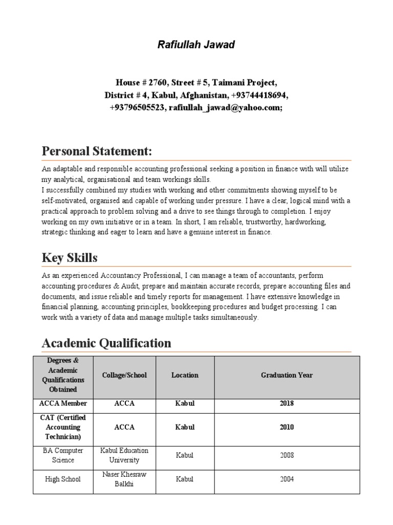 An adaptable and responsible accounting professional seeking a position in finance with will utilize