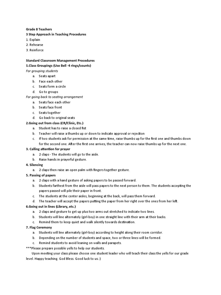 b. Teacher will raise a thumbs up or down to indicate approval or rejection