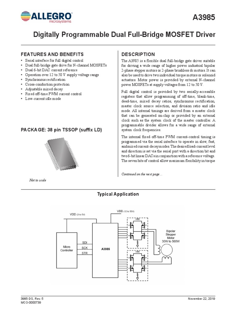 A3985 Digitally Programmable Dual Full-Bridge MOSFET Driver