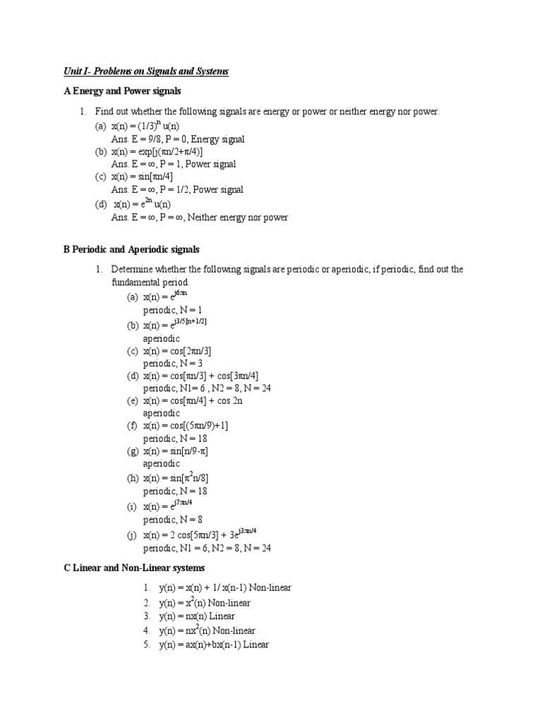 1. Find out whether the following signals are energy or power or neither energy nor power.