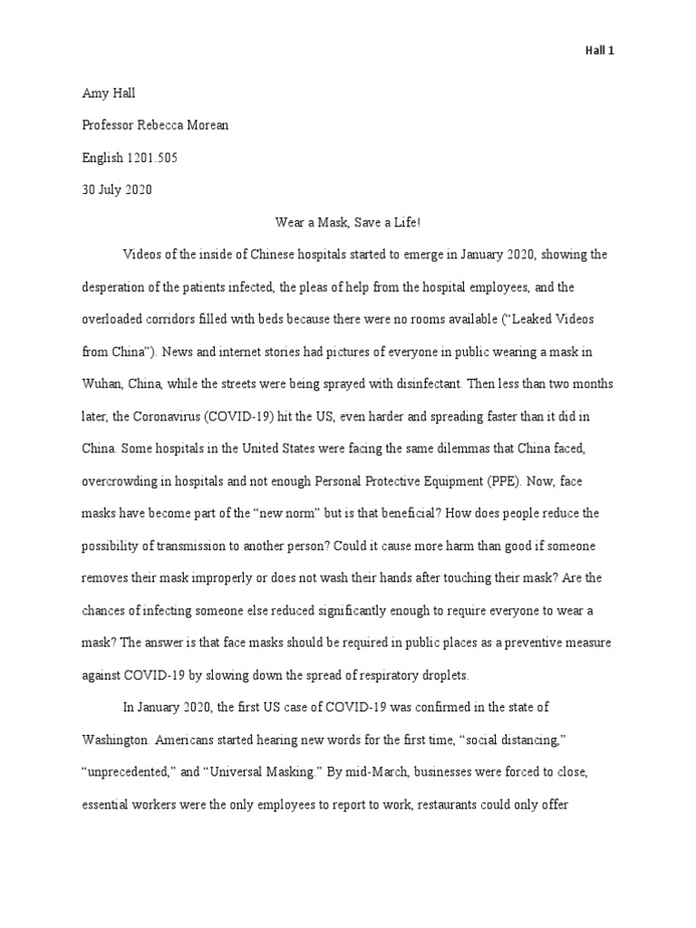 that it will save lives. There are two reasons to wear a mask, to protect oneself and to protect