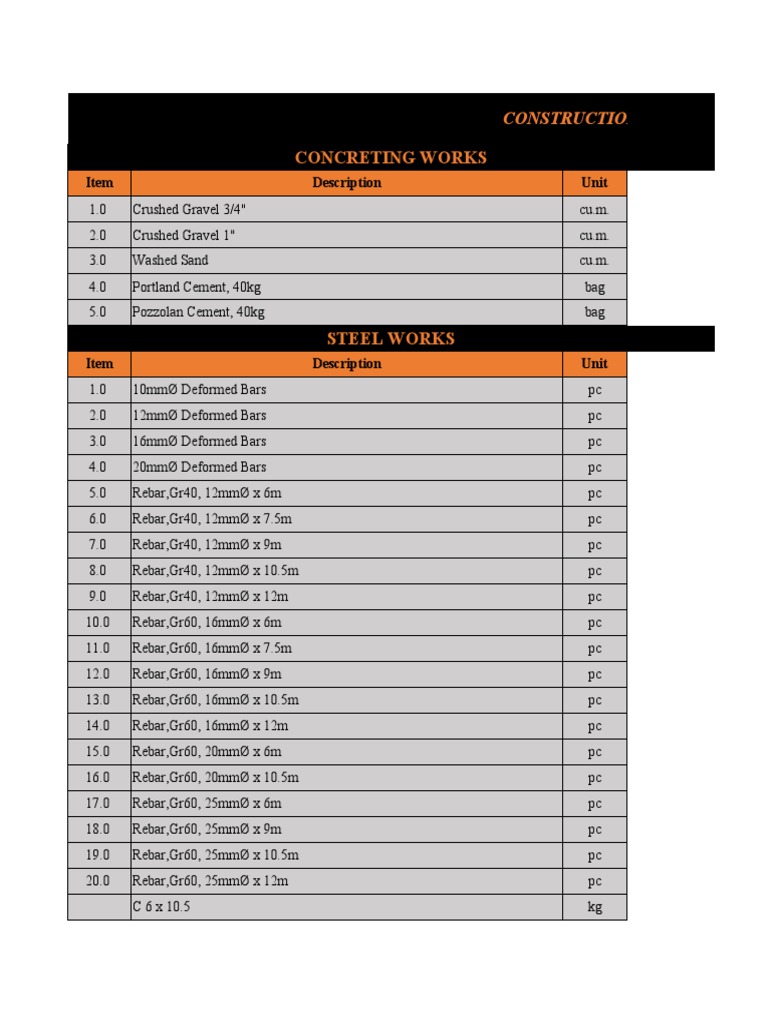 FORMWORKS FABRICATION 9. STRUCTURAL STEE