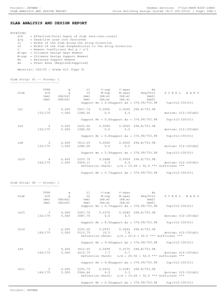 SLAB ANALYSIS AND DESIGN REPORT Orion Building Design System 18.0 (04.2012) / Page: DSM-1